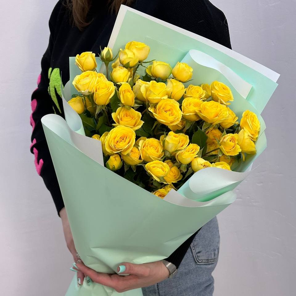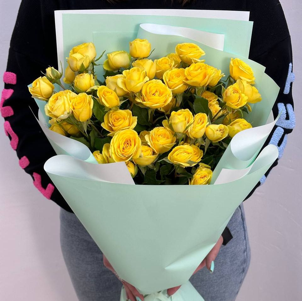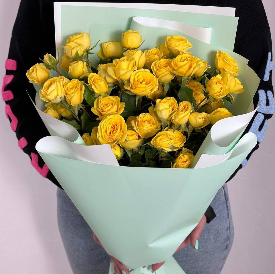 Букет Лимонные кустовые розы