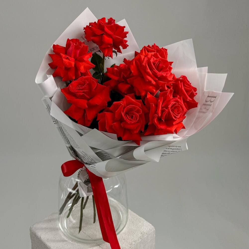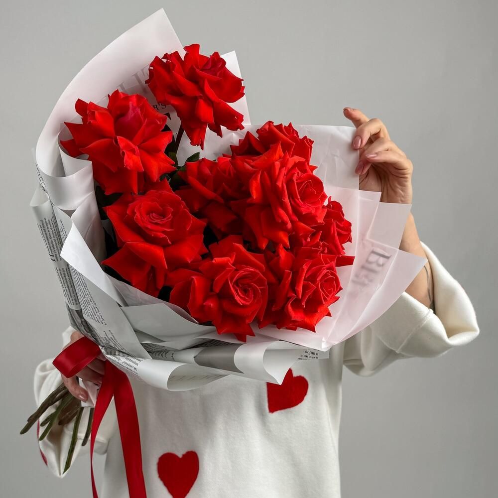 Подарок, который запомнится навсегда: роскошный букет из алых французских роз. Их совершенная красота и стойкость говорят о силе ваших чувств. Нежная, как первое свидание, упаковка из крафт-бумаги делает подарок еще более трогательным и ожидаемым. Выберите этот символ страсти и преданности для самого особенного человека. Подарите эмоции по-французски!
